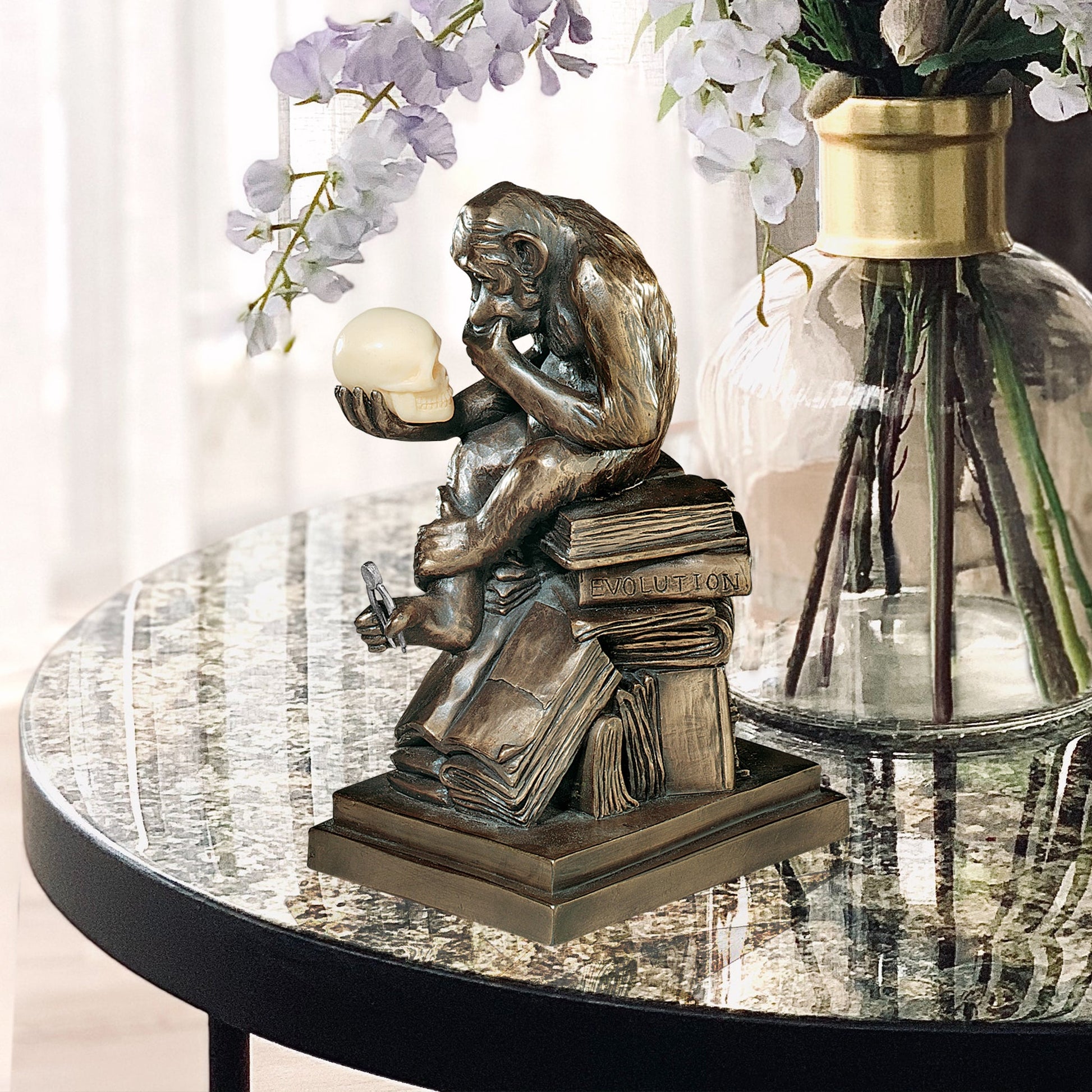 Hand-cast using real crushed stone bonded with high quality designer resin Bronze and Ivory finish Exclusive to the Design Toscano brand and perfect for your home or garden Perfect office or library decor *- Ramo's reflection on Rodin's "Thinker" and Darwin's theory of evolution ponders man's superior ability to ask "Where do we come from" Academics, historians, and Europhiles all appreciate this timeless work of art long popular in Europe. Our museum-quality replica is directly cast in faux bronze and ivory-finished designer resin. 5"Wx4"Dx8"H. 3 lbs. *- Hand-cast using real crushed stone bonded with high quality designer resin *- Bronze and Ivory finish *- Exclusive to the Design Toscano brand and perfect for your home or garden *- Perfect office or library decor *- Ramo's reflection on Rodin's "Thinker" and Darwin's theory of evolution ponders man's superior ability to ask "Where do we come from" Academics, historians, and Europhiles all appreciate this timeless work of art long popular in Europe. Our museum-quality replica is directly cast in faux bronze and ivory-finished designer resin. 5"Wx4"Dx8"H. 3 lbs.