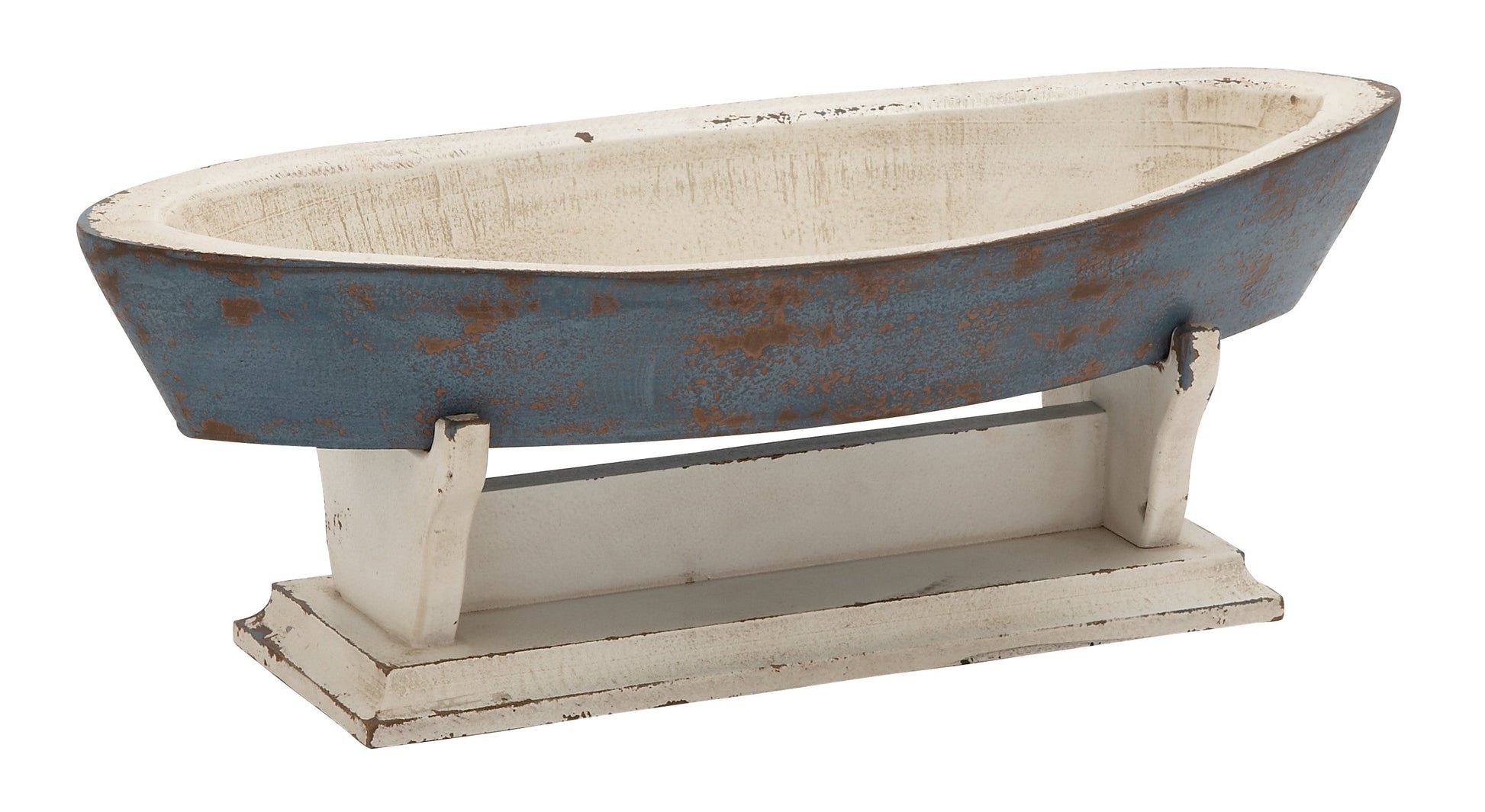 Give your bookshelf, office, night table or coffee table a little whimsy with this sculpture. Let these accent pieces provide a sense of style to your home atmosphere by displaying them on top of a shelf, countertop, mantel, or an accent table. Display this in your hobby room or in your coastal style living room. Designed with black rubber stoppers at the base that prevent scratching furniture and table tops, as well as sliding around. This item is shipped in one carton. Suitable for indoor use. Coastal design. DecMode 22"W, 8"H Wood Coastal Sail Boat Sculpture, Blue *- Designed with a coastal inspired theme for a calming and relaxing vibe *- This sculpture is made from medium density wood materials for a stylish yet lightweight effect *- This beautiful sculpture comes in a blue finish for that coastal vibe *- The sculpture features a regular canoe-shaped boat on a pedestal rack with distressed accents on the color *- The item measures 23"L x 10"W x 8"H and weighs 7 lbs.