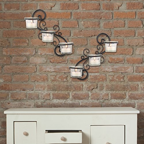 - Wall sconce features an elegant ivy swirl black metal frame and 7 removable glass tea light candle holder inserts (Candles not included)