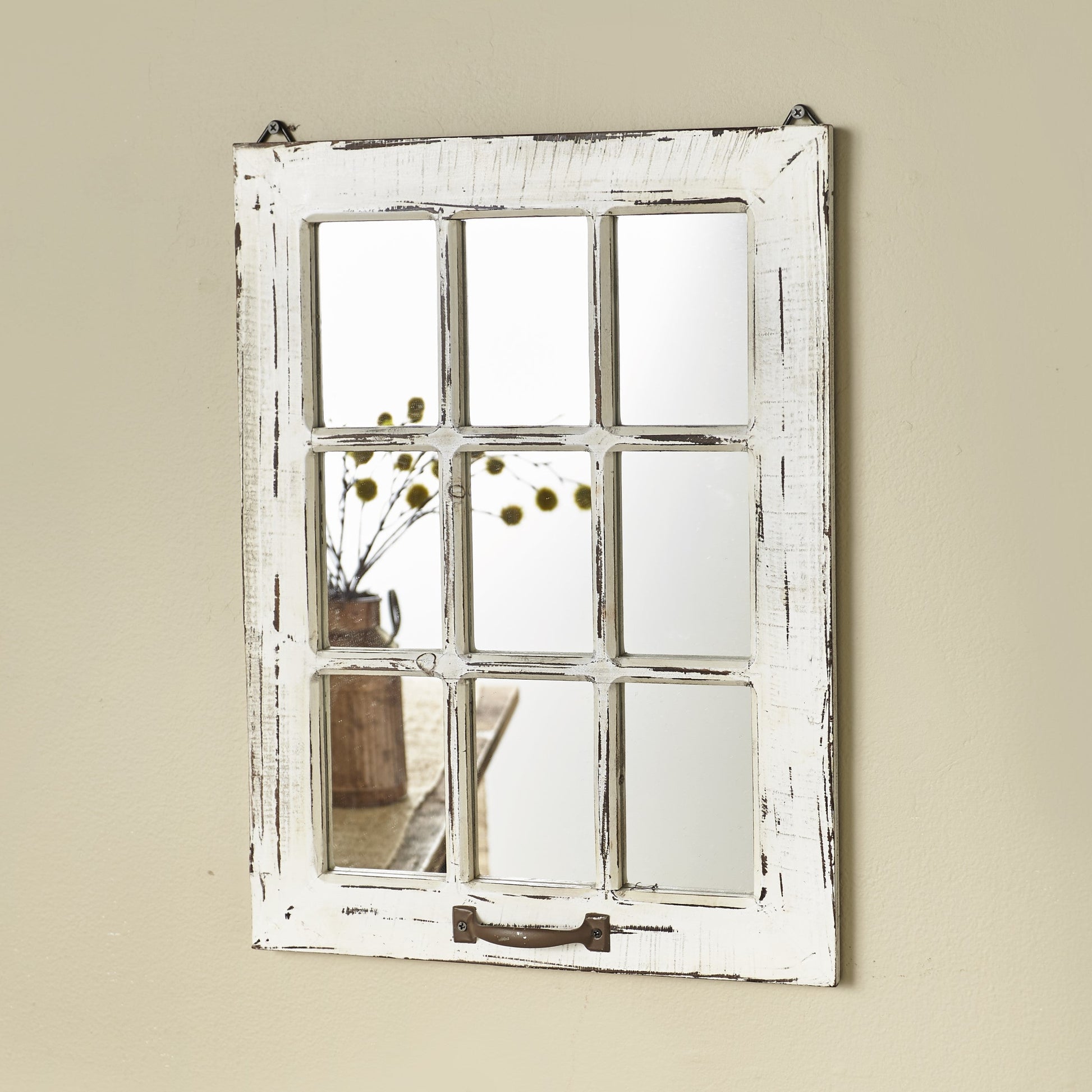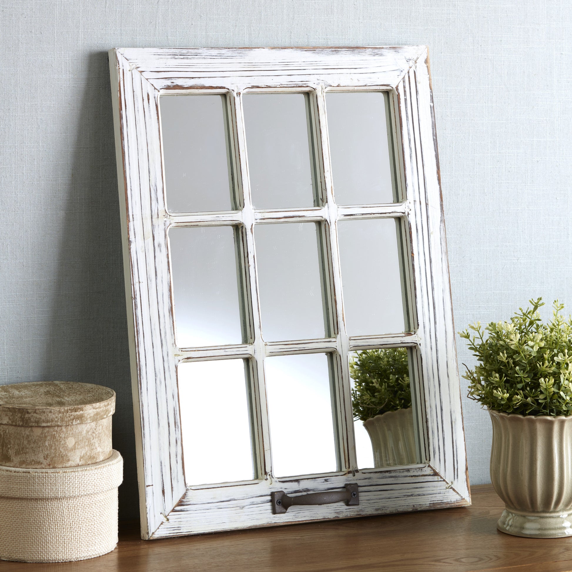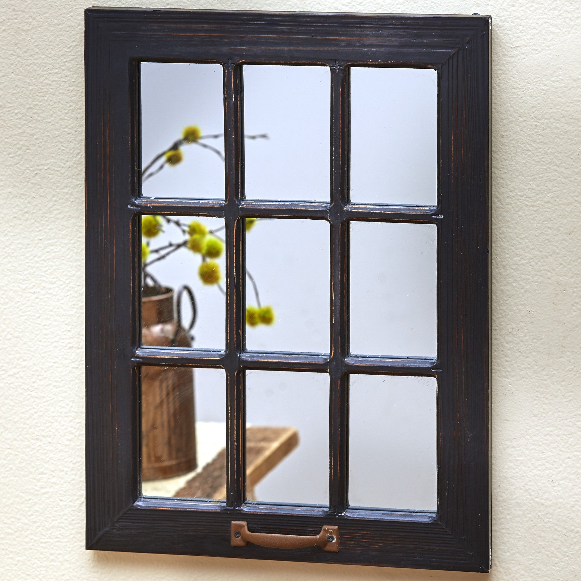 Distressed Wood Windowpane Mirror - Rustic Home Decoration *- Give your space a country upgrade with this mirror that has a distressed wooden window pane overlay on it. Mounted or not, you'll enjoy seeing yourself in it every day. *- It features a pane of glass that's divided into 9 sections by genuinely distressed wood for a rustic country touch. No matter the room you place it in, it complements the aesthetic. *- A decorative handle on the bottom completes its authentic window pane appearance. Hang it on the wall for a farmhouse accent or lean it on top of a dresser if you don't want to hang it. *- Keep this decorative mirror for your own indoor farmhouse accessorizing or give it as a gift to family and friends who enjoy reflective surfaces with a country touch. *- Wood and glass. Ready to hang. 15"W x 20"L