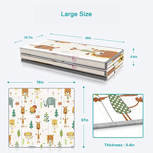 - 💕【Reversible & Foldable Playmat】The baby folding play mat for crawling has double sides patterns of colorful and cute cartoon animals, it can stimulate the baby's real vision growth, intellectual growth. Unlike the other play mat for toddlers with many pieces assembled, This is a whole durable single piece that is foldable, it can be adjusted to covers spaces up to 57-inches wide and 76-inches long, easy to folds down to a compact size to save room with the playing mat case.