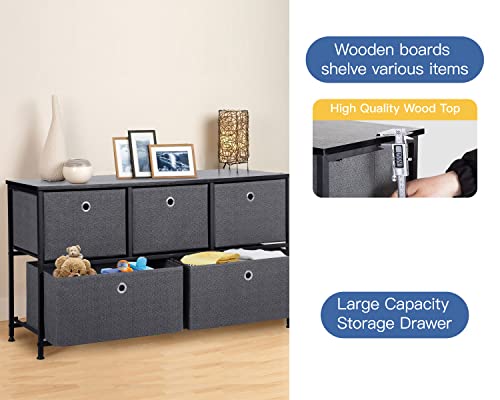 - ♫〖5 Drawer Chest〗:This chest of drawers is great for bedrooms, nurseries, playrooms, entryways and matches perfectly with other WLIVE storage towers.Sufficient Storage Space: WLIVE storage drawers with 8 foldable fabric drawers, ideal for organizing your clothes, blankets, socks and other accessories.Sturdy Structure: Strong steel frame and water-resistant wood top offer stable support and ensure years of use. Also, with anti-tipping system to ensure the safety of your energetic baby.