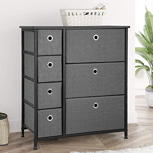 - ♫〖Sturdy & Durable〗: Fabric drawer and strong steel frame with cross supprt bar behind create a sturdy and lightweight dresser, wooden handles attached on forward MDF board are more durable and easy-pull even under full load.Create instant storage in any room of the house; Great for closets, bedrooms, nurseries, playrooms, entryways and more; Ideal for small spaces such as apartments, condos and college dorm rooms
