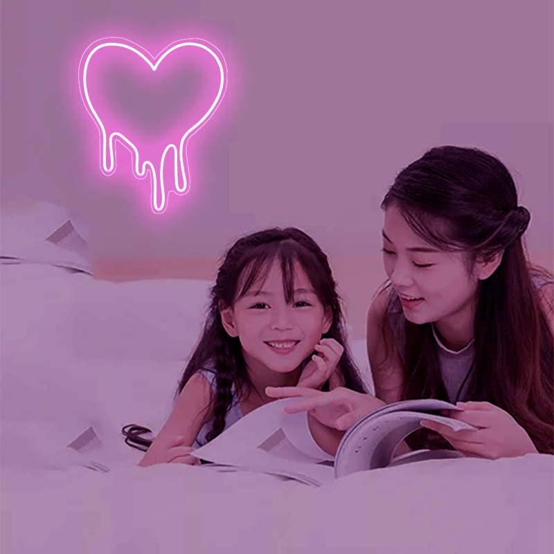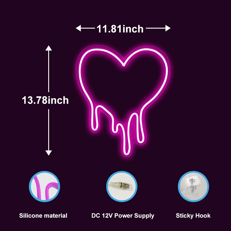 - Light up: A brilliant Dropping Heart Neon Sign Lights show across your wall, windows or door. Adding this neon sign will surely add a romantic ambiance to your room and bring life to a dark and dull space., it can be a decoration to make your party artistically. Creating a cozy and romantic atmosphere.