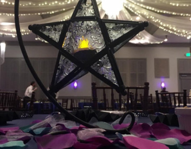 Elegant Sapphire Star Lantern and Glass Candle Holder | Tabletop Wedding Centerpiece Baby Shower, Bridal Shower, Indoor Outdoor Events