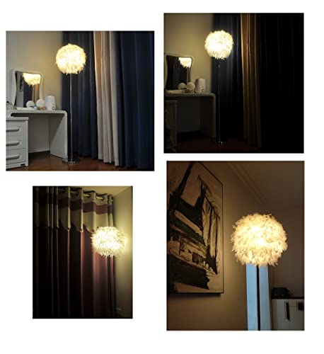 - Romantic beautiful floor lamp,white feather with high quality chrome silver lamp body; at night the white feather shade will give off soft and warm light and you may enjoy a peaceful and romantic night at home