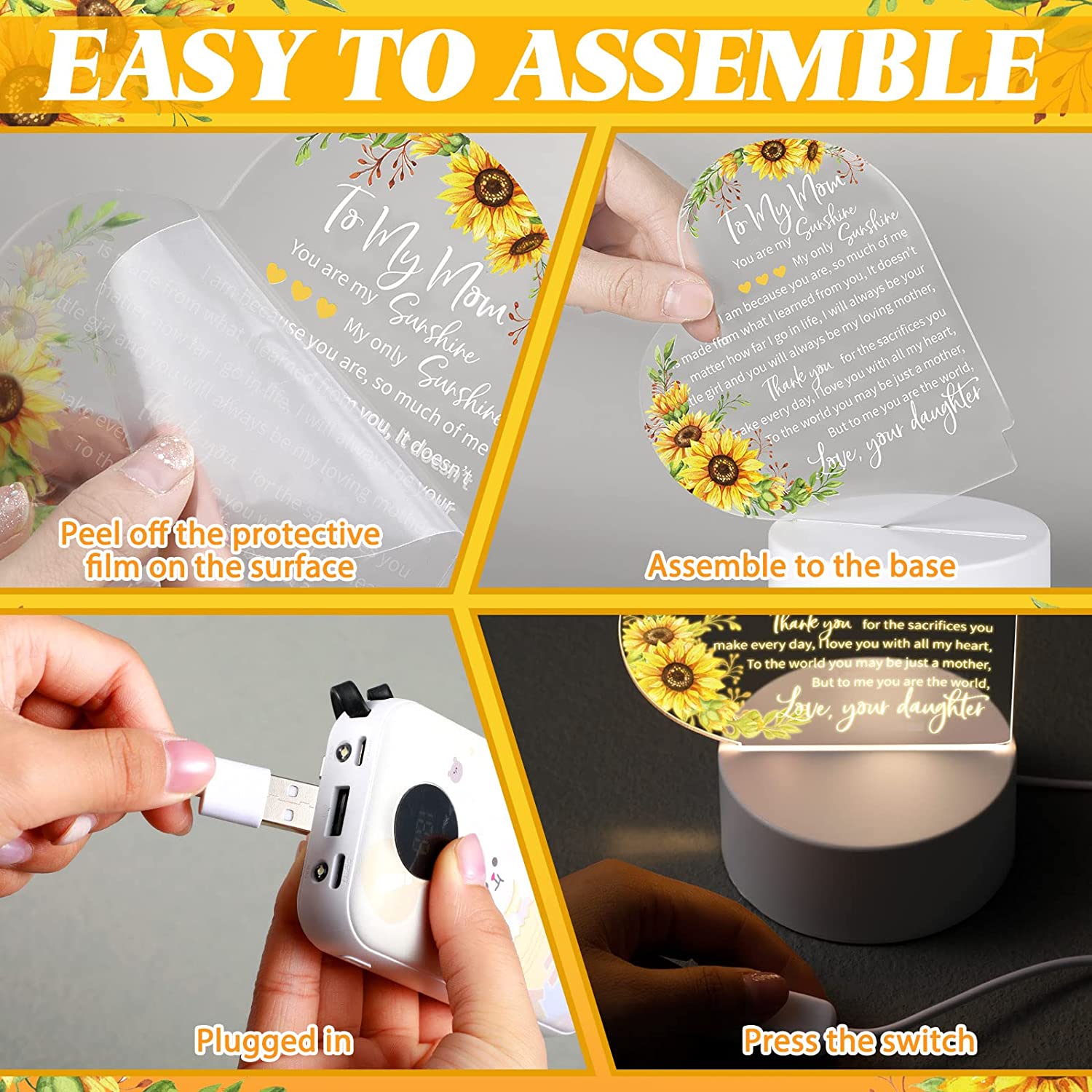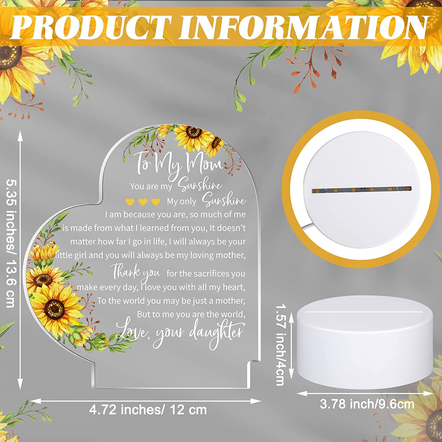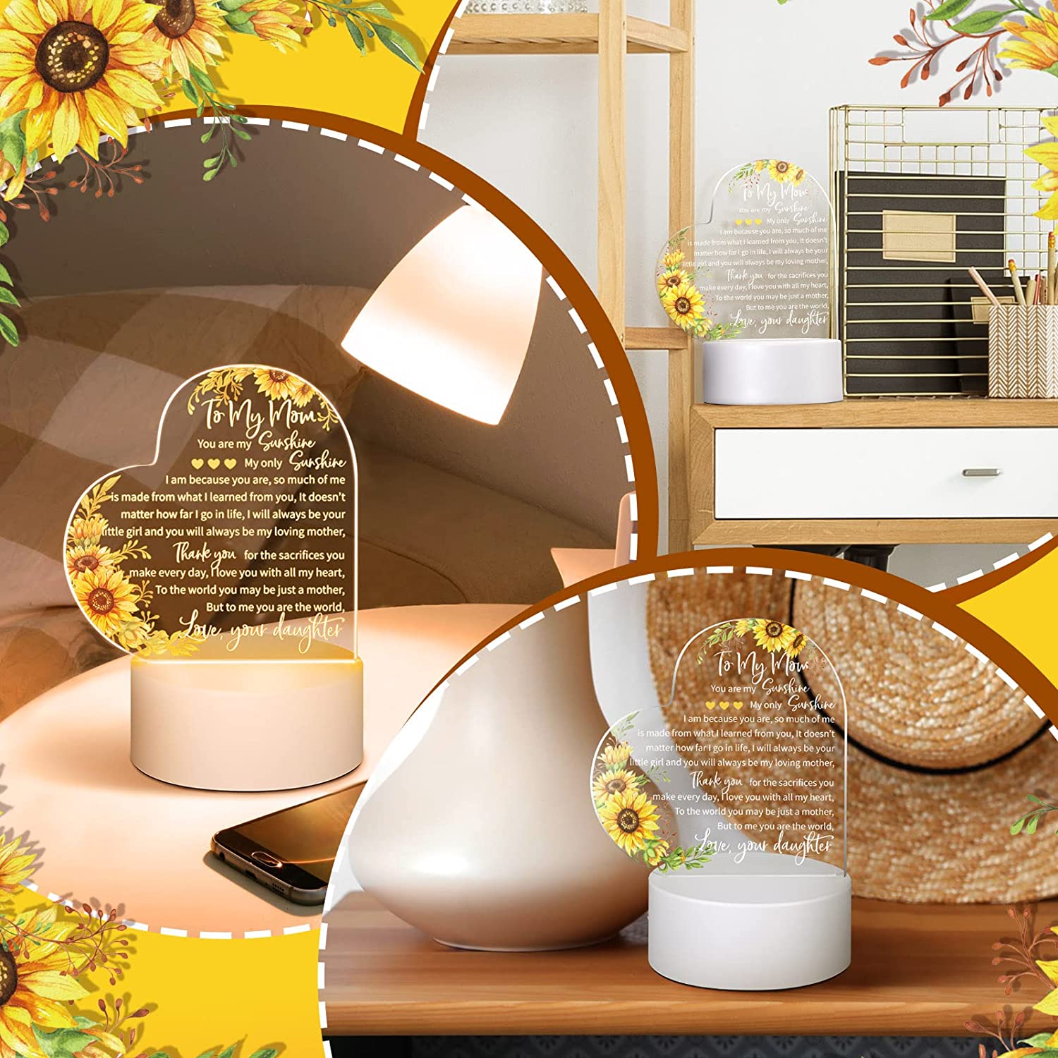 - Quality and Serviceable: mainly made of acrylic with clear printing, these mother daughter gifts from daughter are solid and will not deform or fade easily, odorless and can be placed on the table firmly; Also, the LED light is soft and won't make your eyes feel uncomfortable, and can add a warm and sweet atmosphere to your home