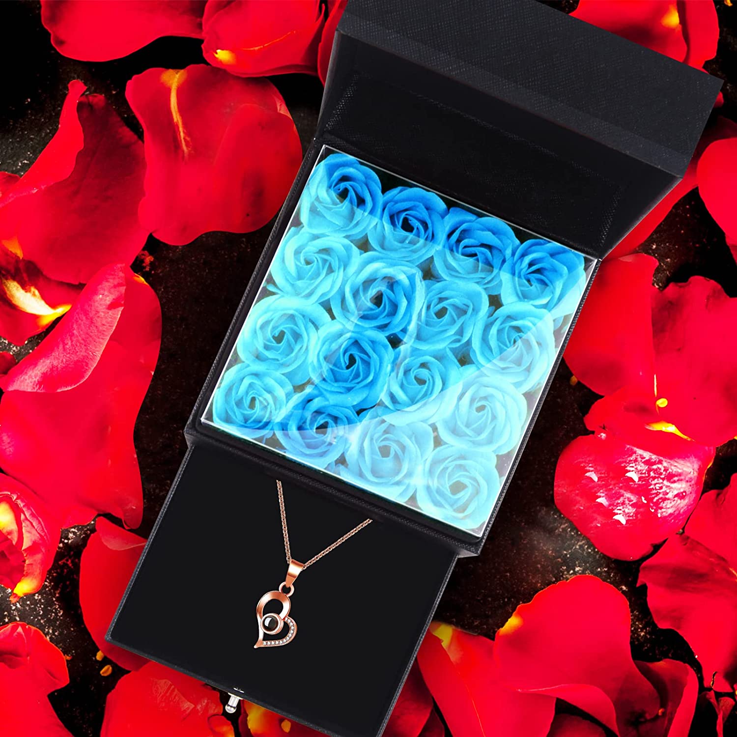 Eternal Preserved Rose, Handmade w/ Love You Necklace 100 Languages, Romantic Gifts for Mom/Wife