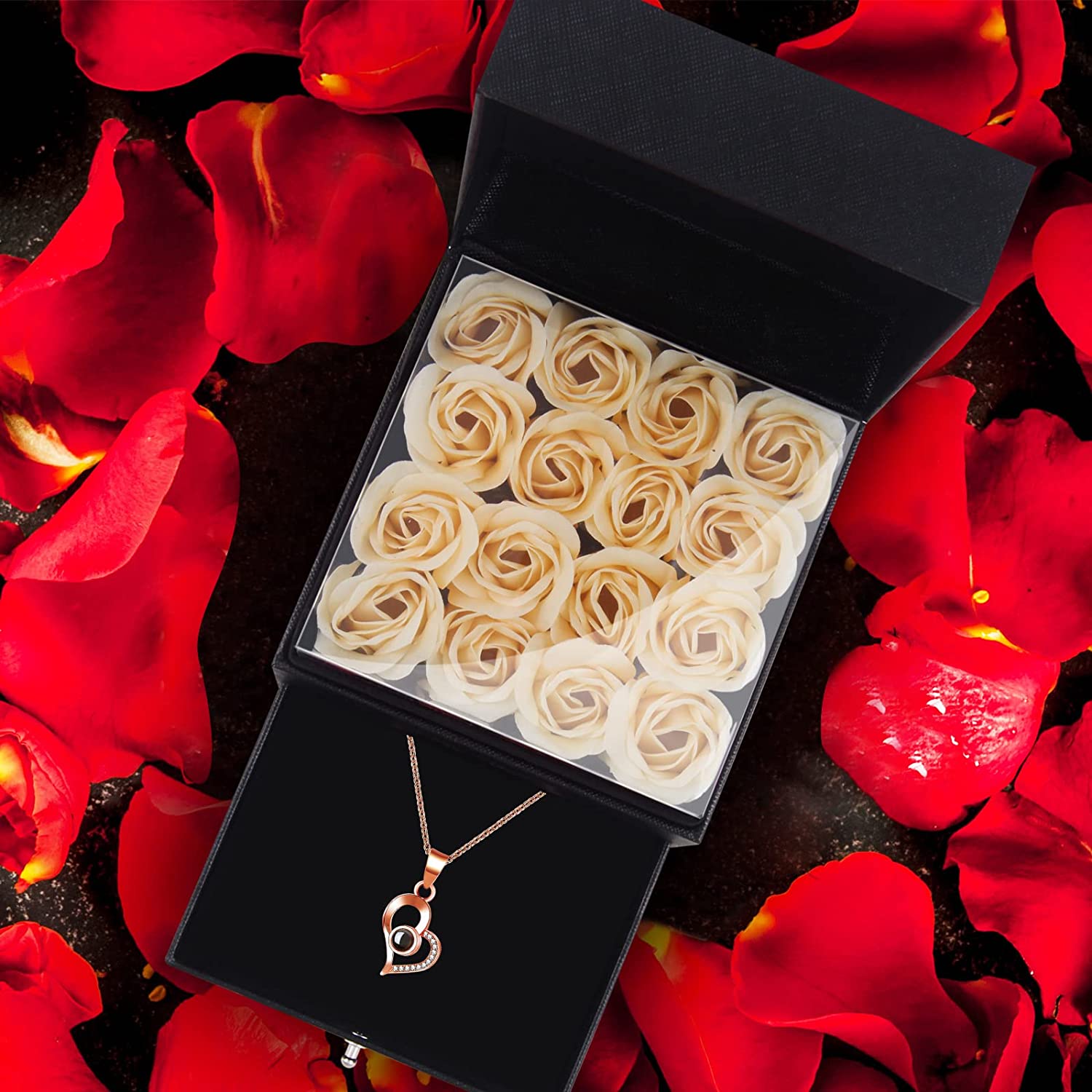 Eternal Preserved Rose, Handmade w/ Love You Necklace 100 Languages, Romantic Gifts for Mom/Wife