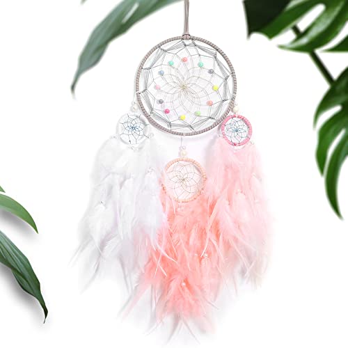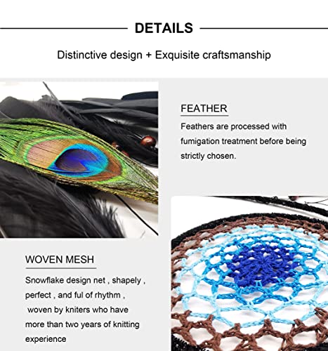 - [Excellent quality]: Our dream catchers are carefully crafted from quality materials. Handmade web, natural feathers,featuring with steel rings, wood beads, rich and beautiful.It's lightweight and easy to hang on a wall,ceiling,or window frame.Perfect for indoor-outdoor decoration.