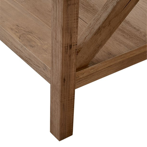 Farmhouse X Style Side Table with Storage, Rustic Weathered Oak