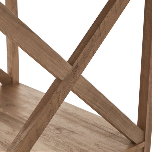 With a simple, rustic-inspired design, the Farmhouse Side Table brings style and function to your living room, den or office. The top surface of this sturdy end table has a natural wood look that can support up to 66 pounds and a bottom shelf for additional storage and display options. The X-brace design on each end adds stability and creates a cozy, country atmosphere. Complete the look with other pieces from the collection including the Mainstays Farmhouse Coffee Table and TV Stand for TVs up to 50" (sold separately).