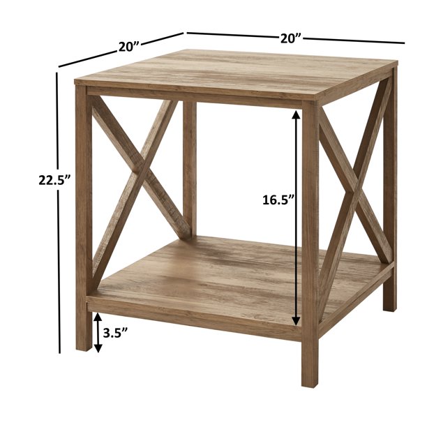 Farmhouse X Design Square Side Table with Storage, Rustic Weathered Oak