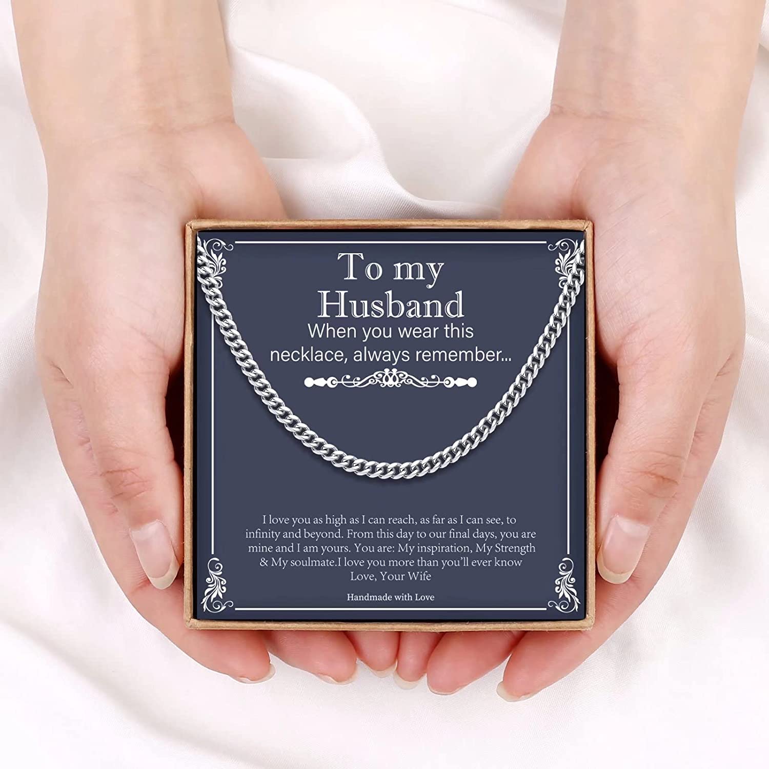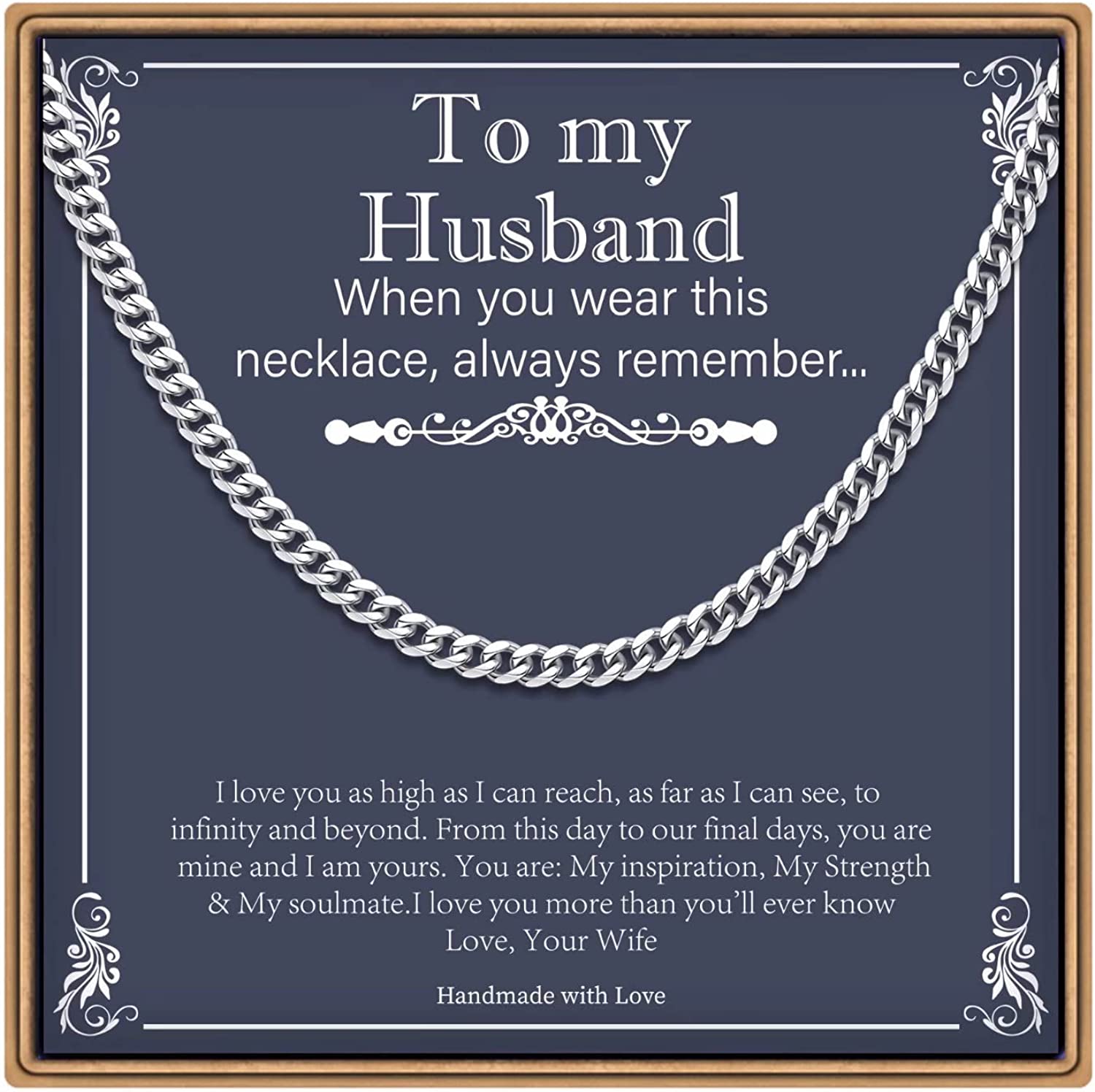 - ❤FATHERS DAY GIFTS FOR HUSBAND❤️"When you wear this necklace always remember... I love you as high as I can reach, as far as I can see, to infinity and beyond. From this day to our final days, you are mine and I am yours. You are: My inspiration, My Strength & My soulmate". This Cuban chain is the perfect gift for your husband to express all your love for him.
