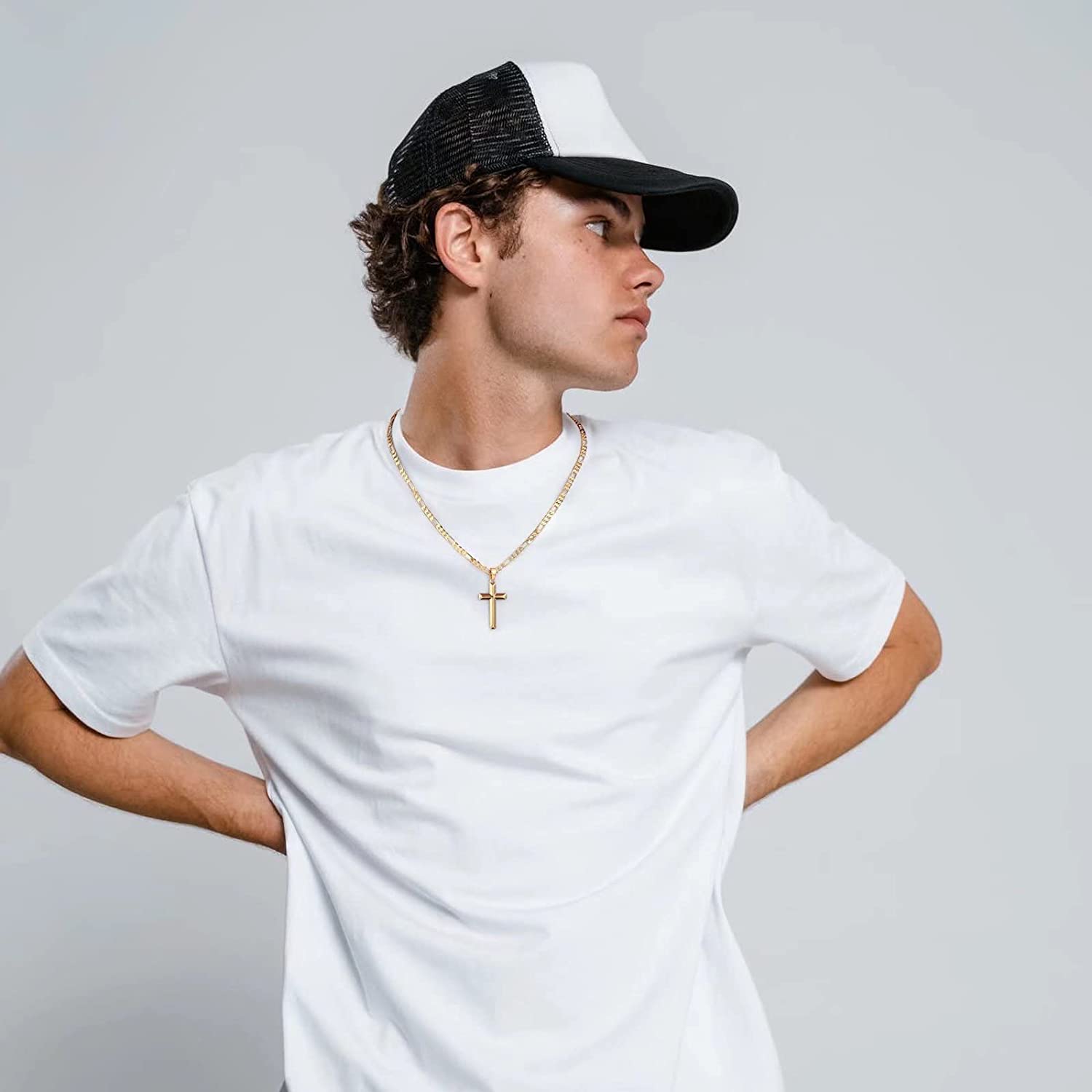 - FIGARO CHAIN: The chain width is 0.2"(5mm), and the length is 20 inches. Cross necklace is comfortable to wear and cross pendant combines perfectly with other necklaces. Perfect gifts for men or boys.