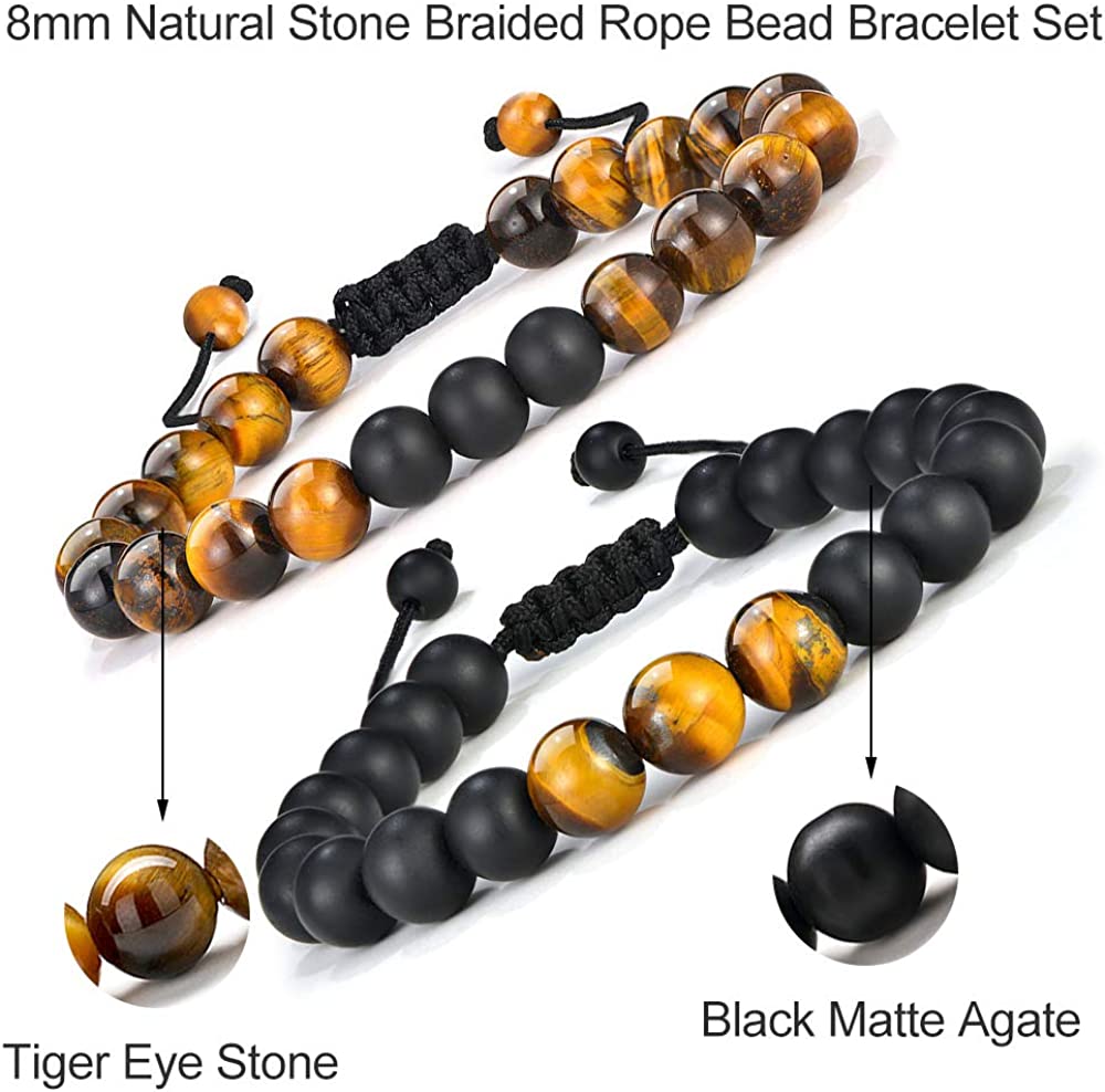 - ❤️SIZE: This tiger eye stone and black matte agate stone bracelet with adjustable cord, inner length is from 6 inches to 12 inches. Suitable size tiger eye bracelet for men and women wearing.