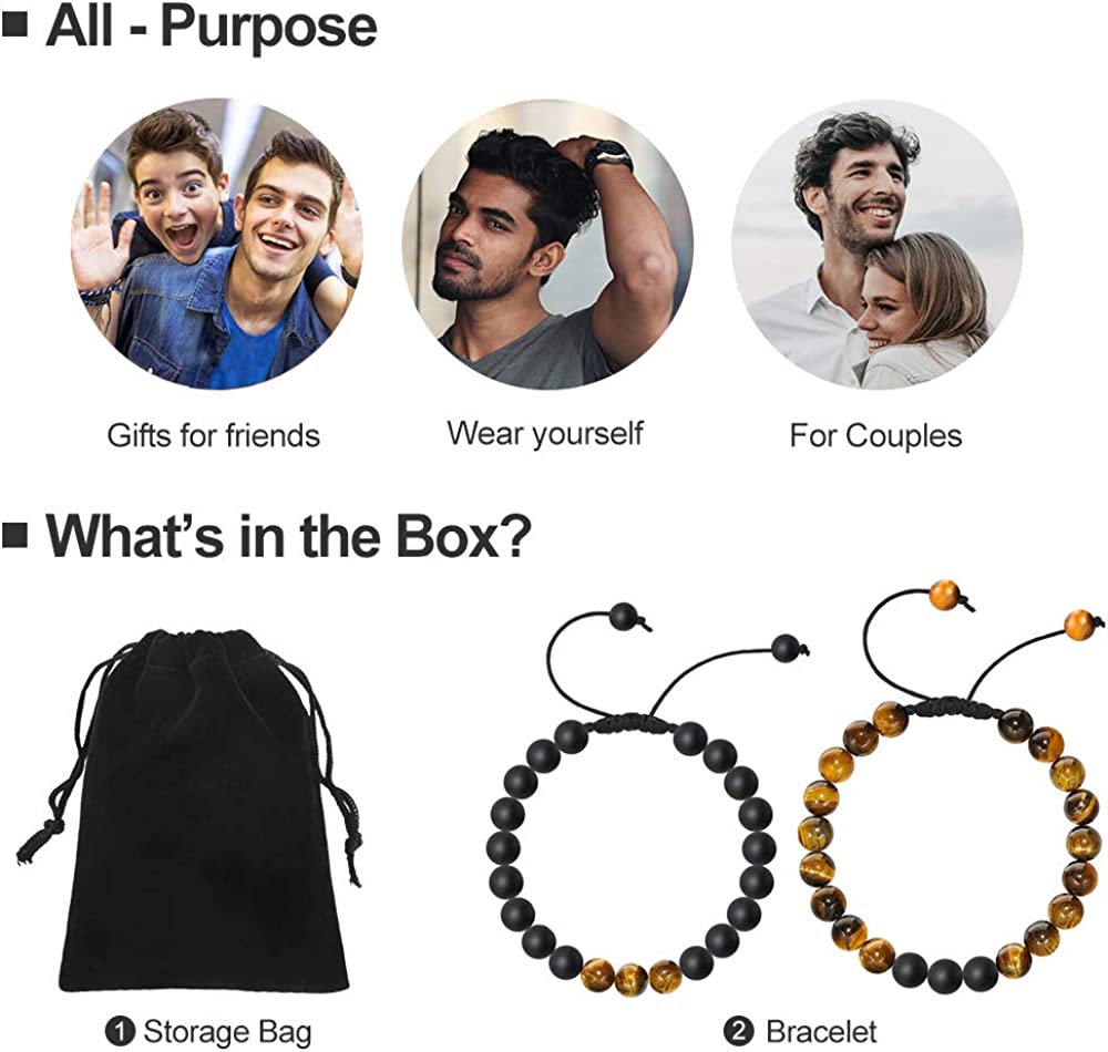 - ❤️MEN BRACELETS: 8mm Natural stone, designed for stress relief, meditate, yoga, essential oil diffuses, have a power of emotional clearing and keeping things energetically balanced. Historically, these stones were always worn as amulets among the ancient civilians. The prime quality bracelet is for the closest person.
