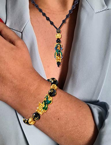 - 🤞Pi xiu Bracelet Necklace Set : Lucky pi xiu jewelry set,you will get 3 pieces feng shui pixiu bracelets and 3 pieces pi xiu pendant necklace. Amulet bracelets and necklaces,which can bring you health, good luck and make you feel safer and in good mood.