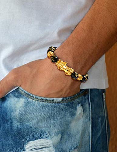 - 🤞Adjustable Size: Each bead of the feng shui pixiu wealth bracelet measures approx 12 mm in diameter.Handmade of Imitate obsidian beads and elastic bands.suitable for men and women, due to the rubber band design, the pixiu bracelet can be adjusted easily and flexibly according to your wrist size, one size fits most people.