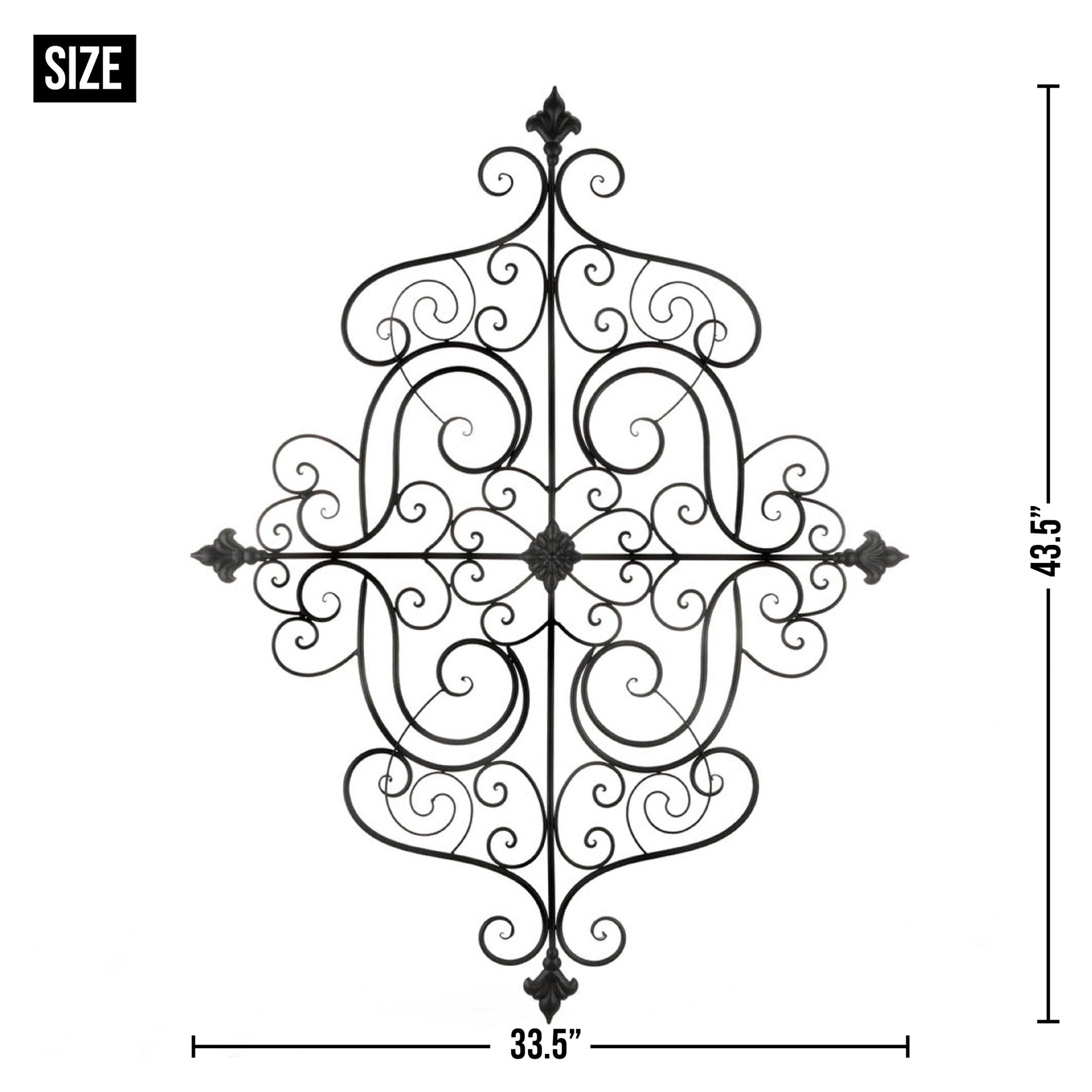 - With Mediterranean styling this wall plaque has a scrolling design and fleur-de-lis accents. It's the perfect accent over a fireplace mantel, in a bedroom, living room or home office. Easily fill empty wall space in your home with a decorative statement piece.