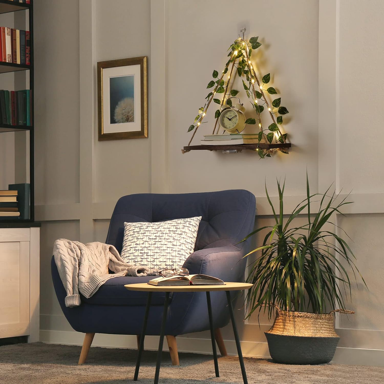 - Unique design:This wooden hanger is made of high-quality materials,equipped with hemp rope,decorative leaves,and light strips,which can be paired with any rural,Bohemian,modern or minimalist home decoration.