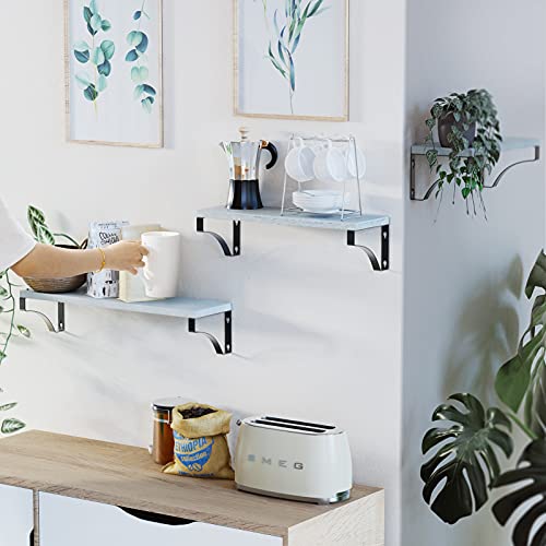 - Amada Floating Shelves Wall Mounted Set of 3, Rustic Wood Wall Shelves for Bedroom, Bathroom, Living Room, Kitchen, Laundry Room Storage & Decoration, White AMFS03W