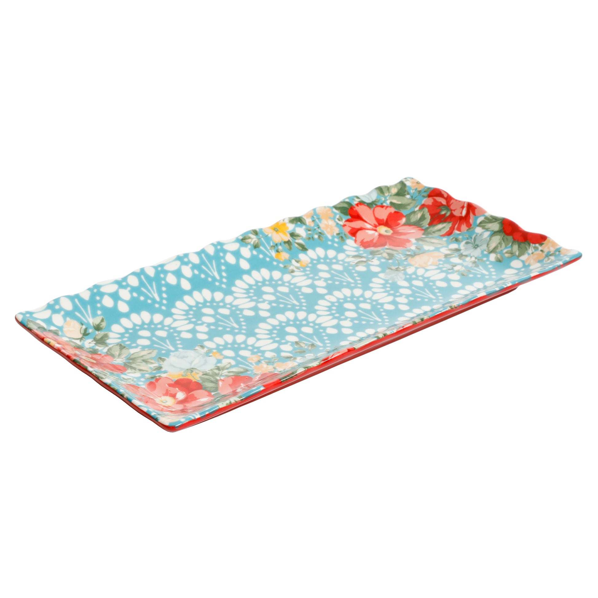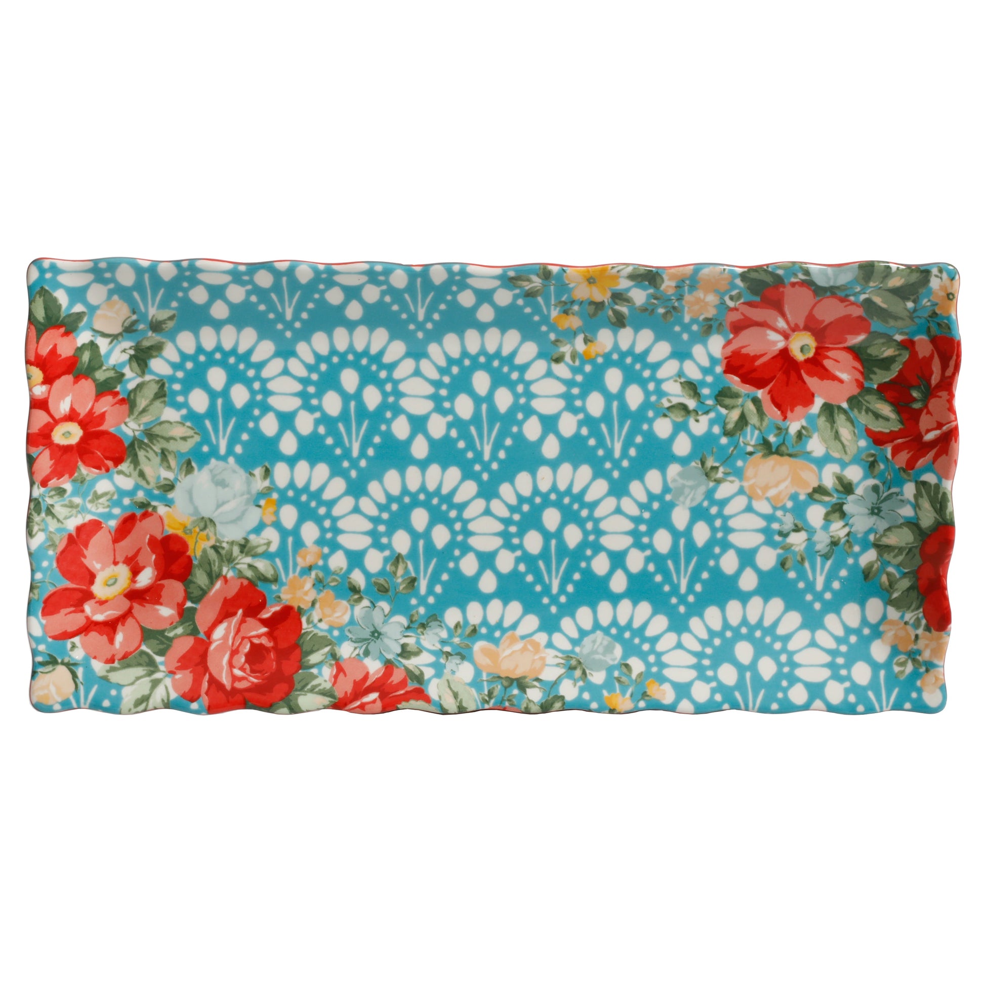 Serve up your delicious homemade food with Floral Medley 3-Piece Serving Platters. Each tray features a beautiful floral pattern that will bring the charm of Ree's ranch to any occasion. These large 12.3-inch by 6-inch serving platters are perfect for sharing everything from cupcakes at parties to fresh fruits for an afternoon snack. They also coordinate beautifully with other Pioneer Woman items to create a table setting that Ree would be proud of. All three platters are made of durable stoneware that is dishwasher safe for easy cleanup. Be sure to add these fun rectangular trays to the rest of your Pioneer Woman serving collection today. Meet Ree: Ree Drummond is a NY Times Best Selling Author, TV personality, social media phenom, and the woman behind the popular Pioneer Woman lifestyle blog that started it all. She's also a lover of butter, basset hounds, Ethel Merman, her hunky, cowboy husband Ladd, and their four kids. Her casual country style and delicious recipes have made her a go-to for all things cooking and entertaining. The Pioneer Woman Floral Medley 3-Piece Serving Platters: *- 3-piece serveware set *- Set includes (3) large 12.3-inch x 6-inch serving trays *- Brings the charm of Ree's ranch to any occasion *- Each tray is decorated with a different floral pattern *- Perfect for serving during casual or more formal occasions *- Made of durable stoneware *- Dishwasher safe for easy cleanup *-