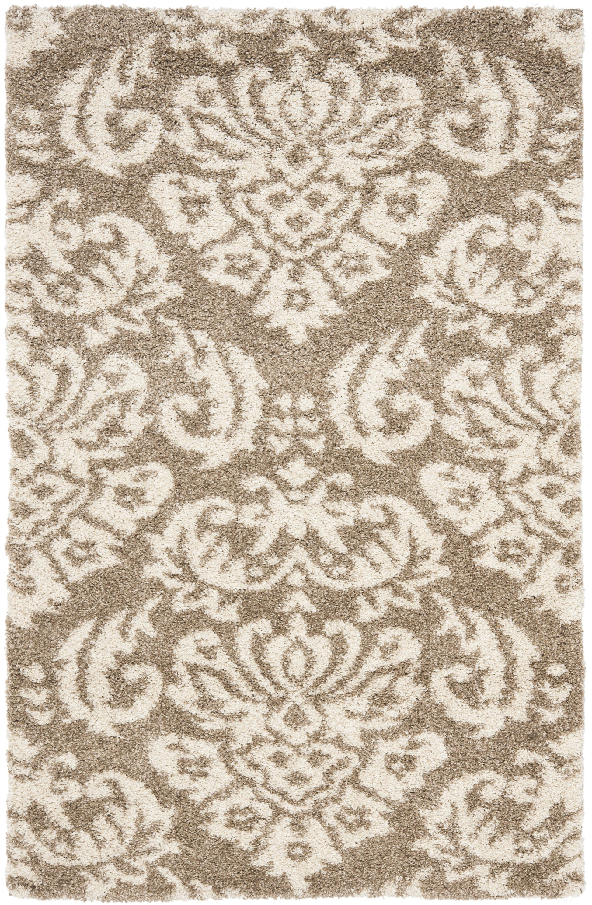 Florida Desmond Damask Plush Shag Area Rug, Beige/Cream, 3'3" x 5'3"