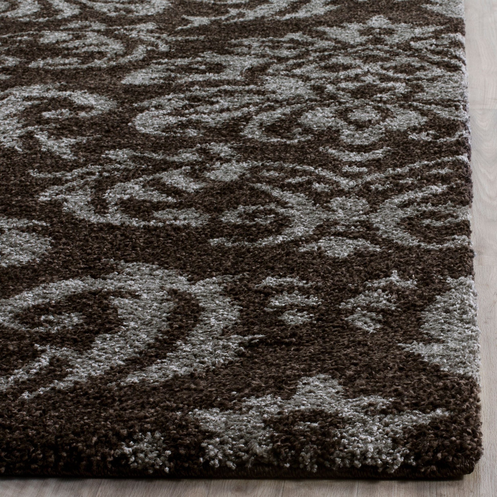 Florida Desmond Damask Plush Shag Area Rug, Dark Brown/Smoke, 3'3" x 5'3"