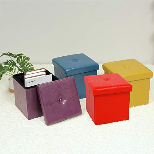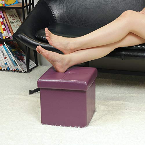Folding Storage Ottoman, Faux Leather Footrest 11.8"x11.8"x11.8"