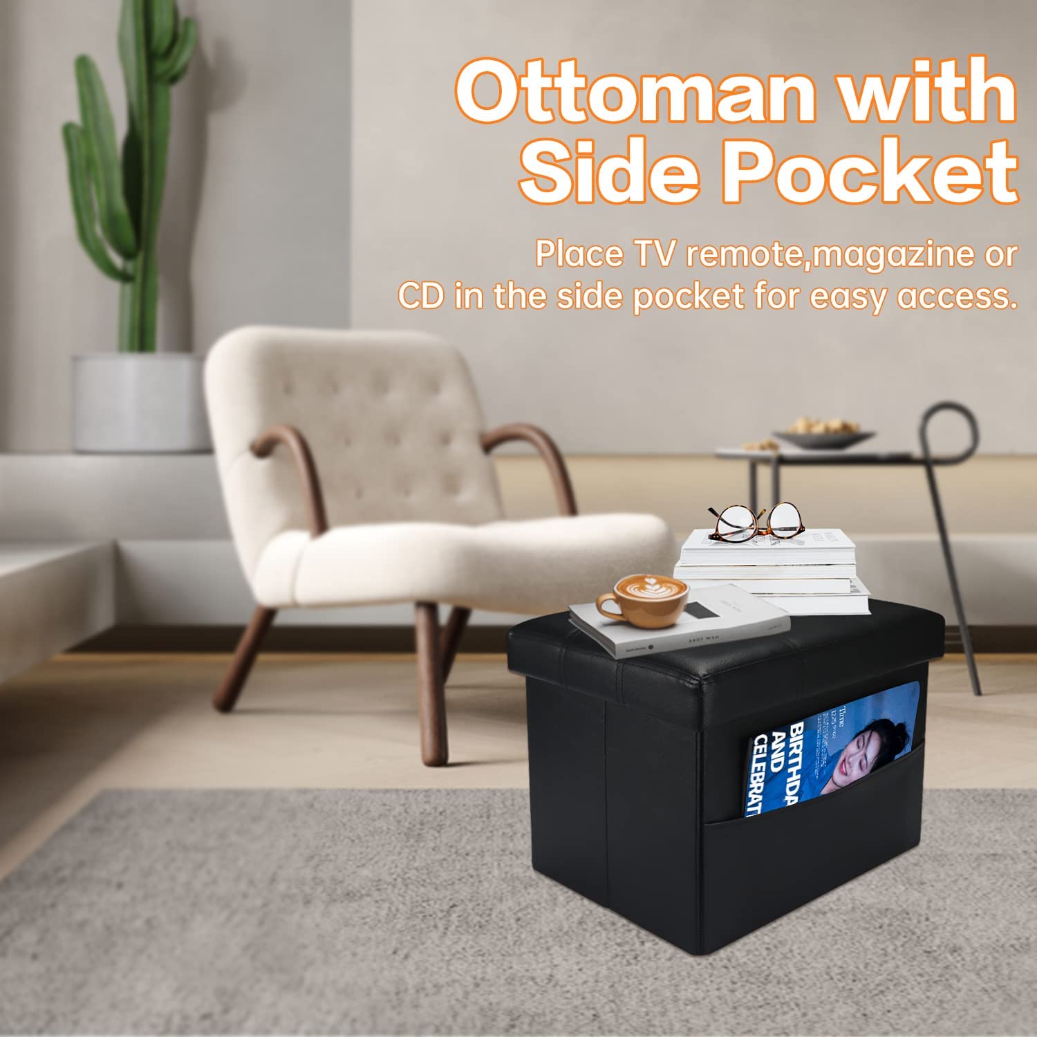 - Ottoman with Side Pocket The storage ottoman footrest provide side storage pocket,which is convenient for keeping essentials within easy reach.Can be used to place TV remote control, gamepad, CD, books or magazines.Take it easy.