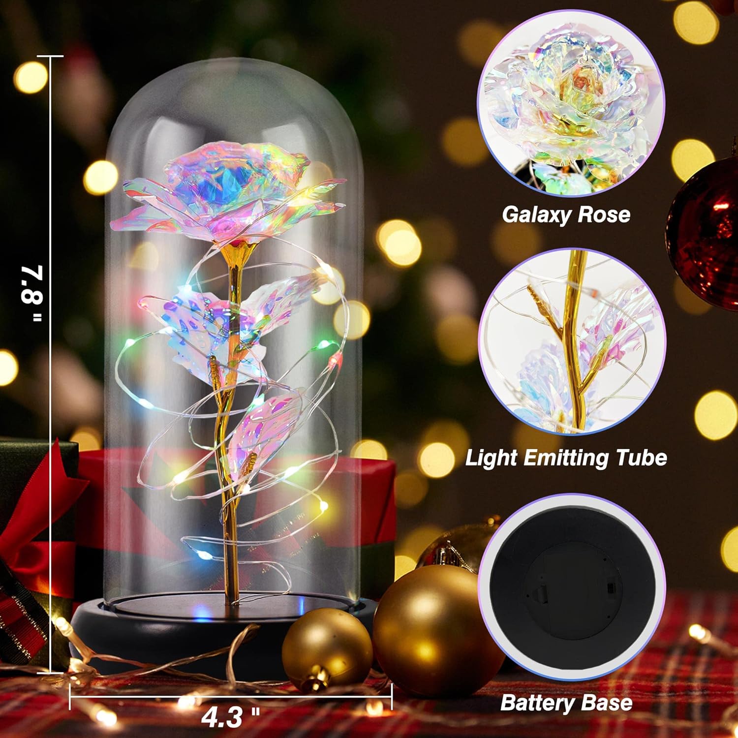 - Strict quality controlIn the production workshop, we require all workers to wear gloves to prevent fingerprints from contaminating the glass dome and gift boxes, and conduct detailed inspections on all gift boxes sold to ensure that the gifts are delivered to you in the best condition. Note: Three AAA batteries are required to light the rose light, which are not included in the gift boxes.