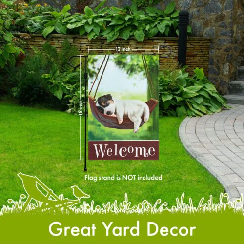 Garden Flag Decoration Sleeping Puppy and Welcome Quote 12"x18"