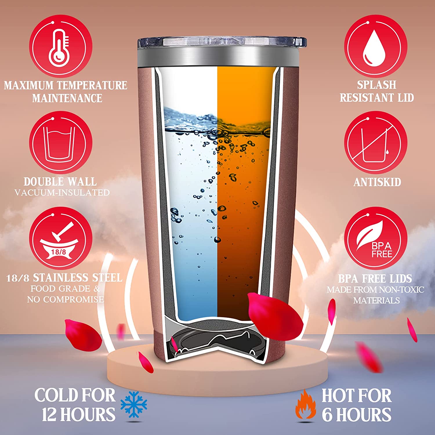 - Sturdy Material: Our tumbler is made of food-grade stainless steel, it is durable and resistant to rust. The tumbler is double-insulated to prevent scalding, and it can keep the temperature of the drink for a long time. The sweat-free design keeps hands dry and comfortable to hold.