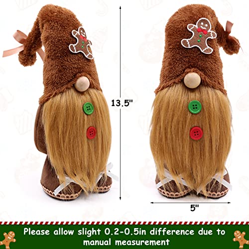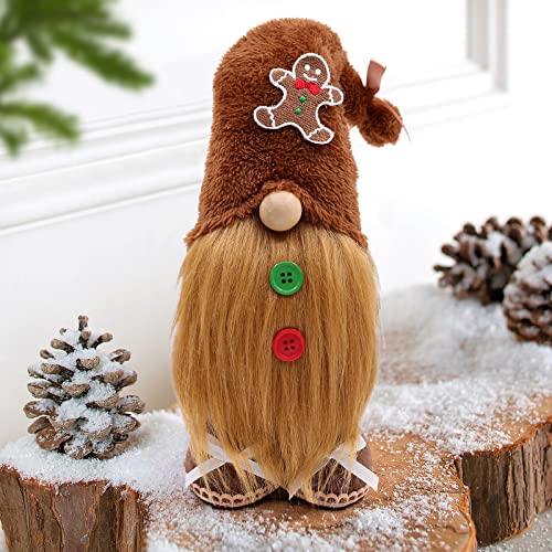 - 100% HANDMADE -- Each gingerbread gnomes is made of a wooden nose, plush and felt, soft, non-toxic, and sewn neatly. The beard is made of faux fur. A stable and lightweight base enables multiple-use locations such as a tiered tray, table, sofa, bookcase, shelves, and mantels.