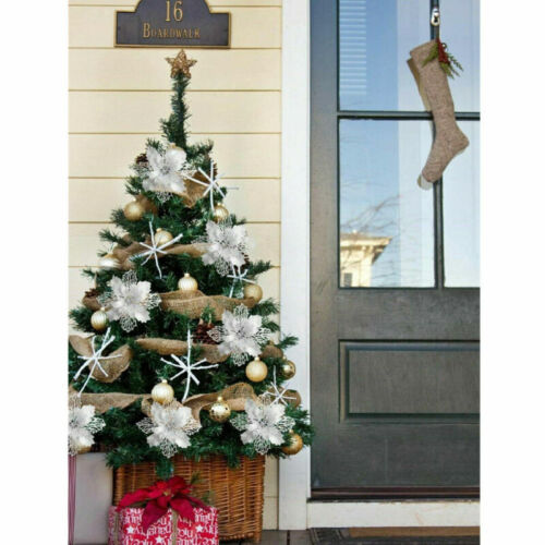 Glitter Christmas Poinsettia Hanging Flowers Xmas Party Tree Decoration