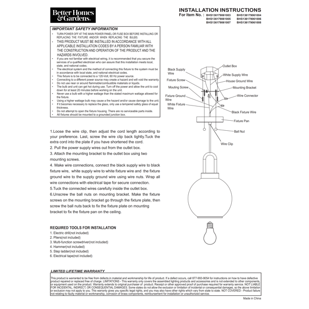 Come with 4 hooks and 4 mounting clips to hang the lamp cord from ceiling. Hang the chandelier cord in high wherever you like and add the bulbs, then just plug and play. Easy to use.