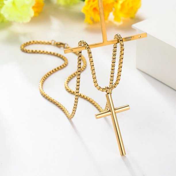 Gold 3D Cross Pendant Necklace Box Chain Choker Religious Jesus Jewelry Amulet