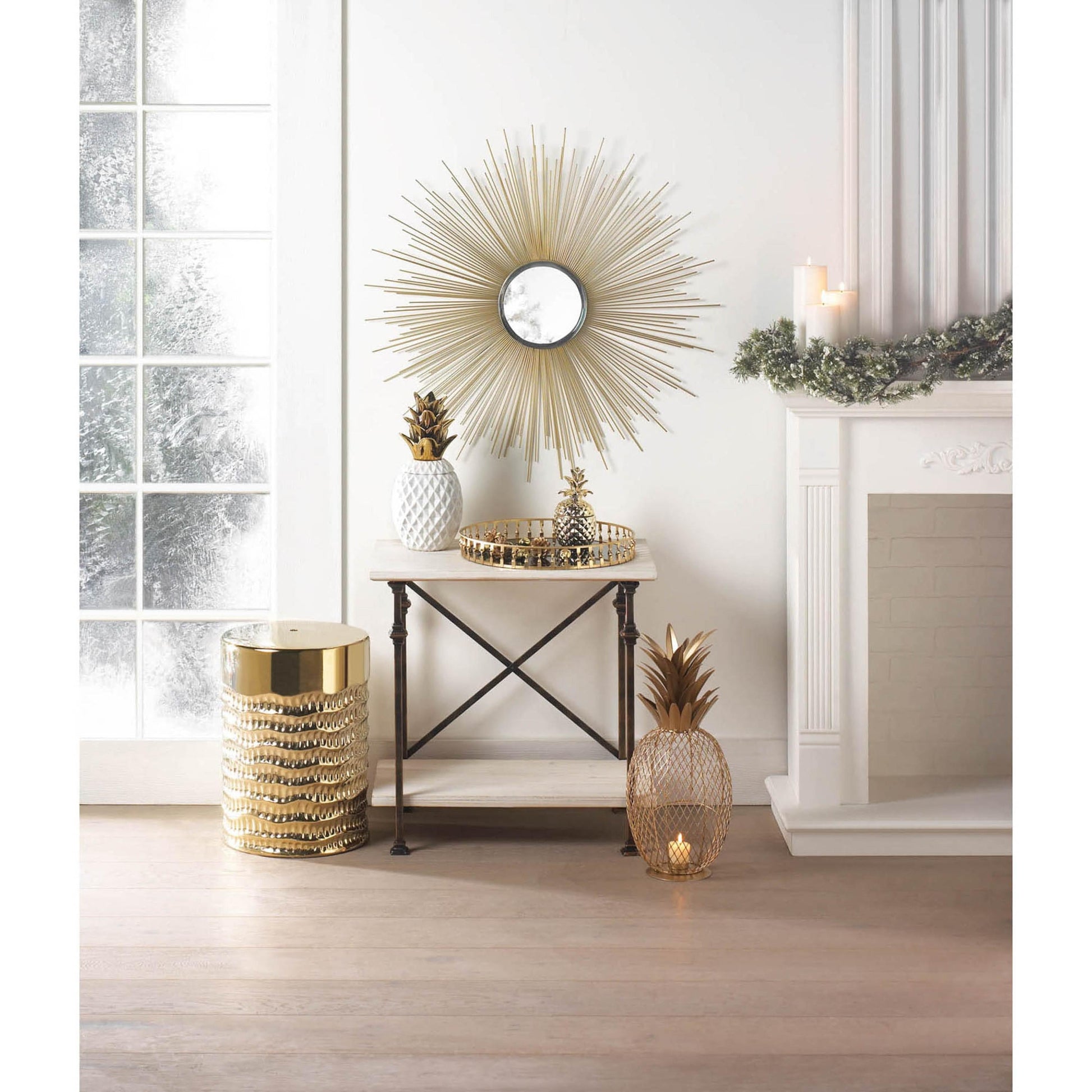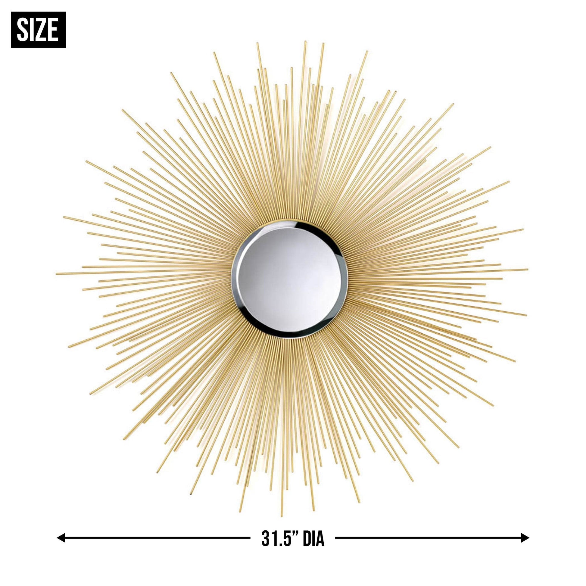 - A stunning addition to any room, this gorgeous mirror takes a touch of vintage style and makes a modern masterpiece. It features a beveled mirror inset in a burst of shimmering golden rays. A great housewarming gift or personal home décor piece!