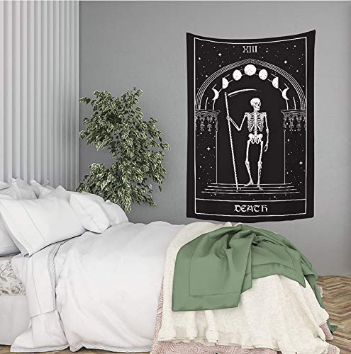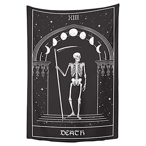 Gothic Tarot Tapestry Wall Hanging, Skull Moon Decor for Bedroom Dorm