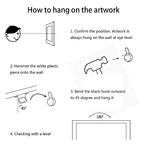 - 【EASY TO HANG AND SAFE PACKING】Hook is already mounted on the stretcher bar to make the placement on the wall more easier! Hammer the white plastic nail onto the wall.