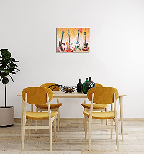 - 【SELECTED ARTWORK QUALITY】This guitar wall art painting is a HD giclee printed on high-quality glossy canvas, using waterproof ECO solvent ink, which will not fade for a long time. Original design for us, hand-painted texture embellishment. In addition, due to display problems on the monitor, the actual color may be slightly different from the picture.