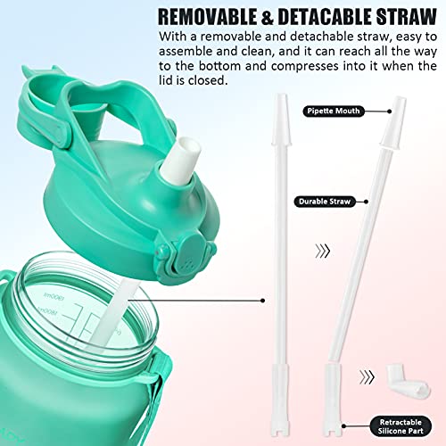 - BPA FREE & ODOR FREE: Built with sturdy premium BPA free, odorless, food-grade Tritan material that better than the ones in market, half a gallon water bottles with time marker and straw ensure every sip of water you drink is healthy. It is perfect for sports enthusiasts to fit any outdoor activities including fitness sport,cycling, hiking, running, yoga, workout, mounting or any other sport at home, the gym! Tired of flimsy and unpleasant odor, time water bottle half gallon is worthy for a try!