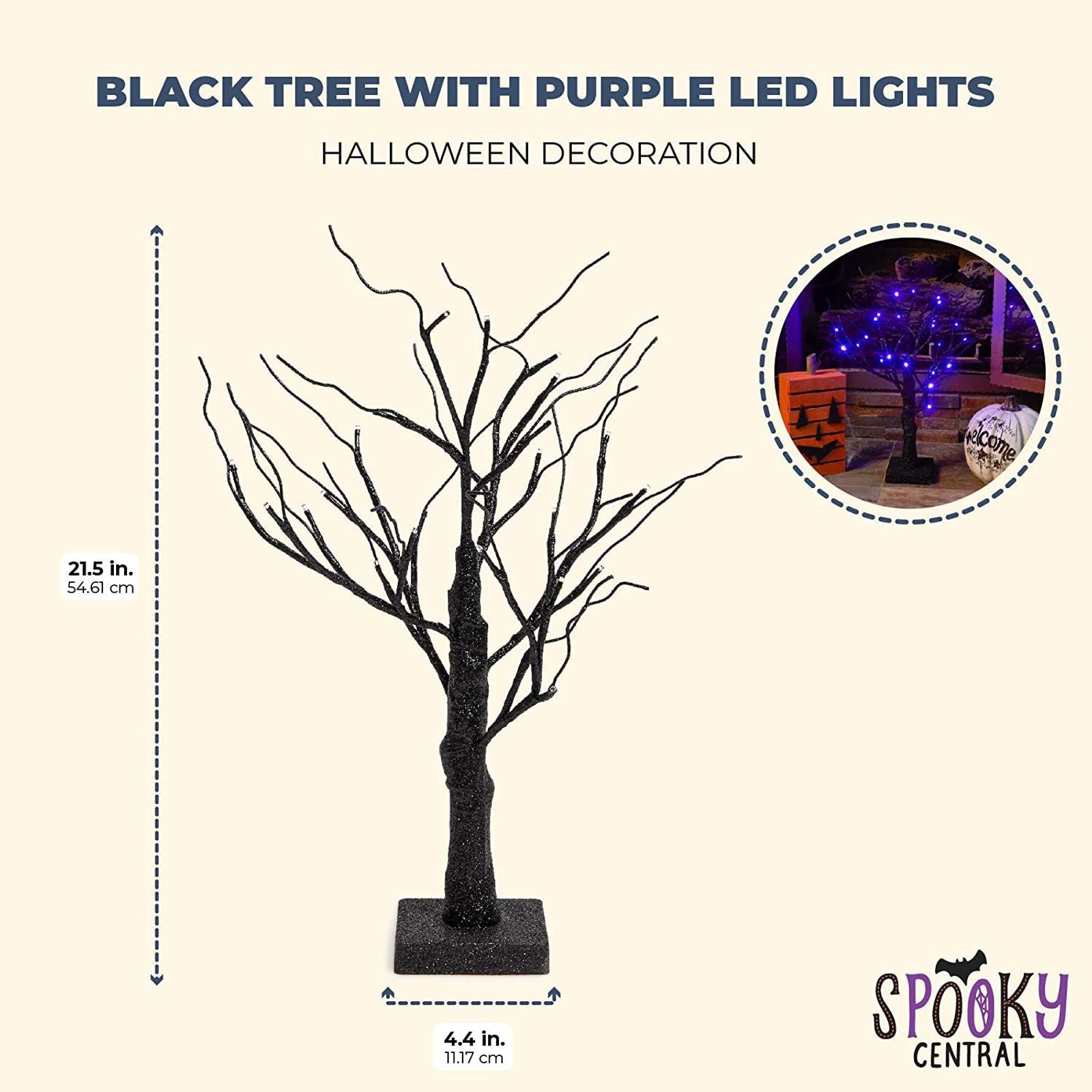 Halloween Decorations, Black Tree w/ Purple LED Lights (18 in.)