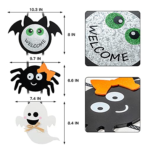 - 【Halloween Decor for Home】- Spooky meets sweet in this decorative accent, an essential for celebrating everyone's favorite Halloween holiday. Make your Halloween party more spine-chilling with this Wooden Halloween Wall Decor with Bat, Spider and Ghost as a perfect finishing statement to your spooky All Hallows Eve event. Hang this signs on your door for a spooky welcome, or indoors to complete your haunted house.
