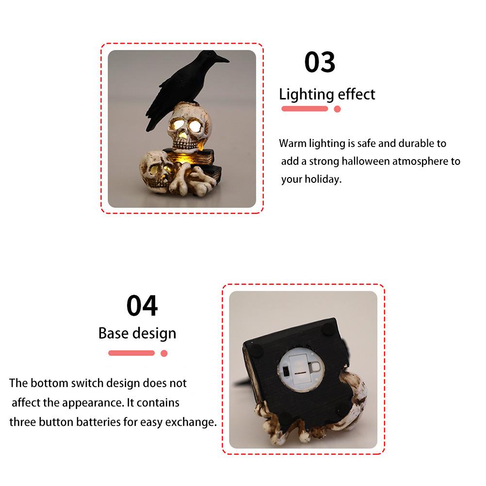 - Features: Halloween Decorations Lamp, Bar Decoration Props, Skeleton Head Crow LED Light