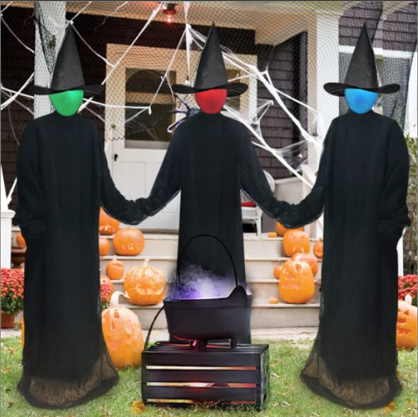 Halloween Decorations Large Light Up Holding Hands Screaming Witches Sound-Activated Sensor