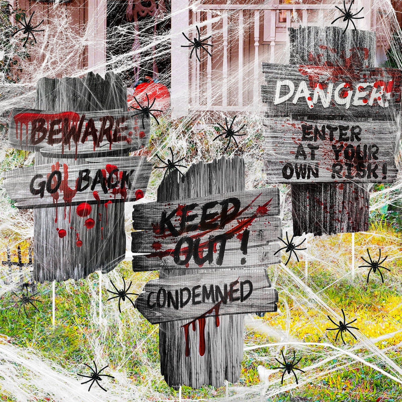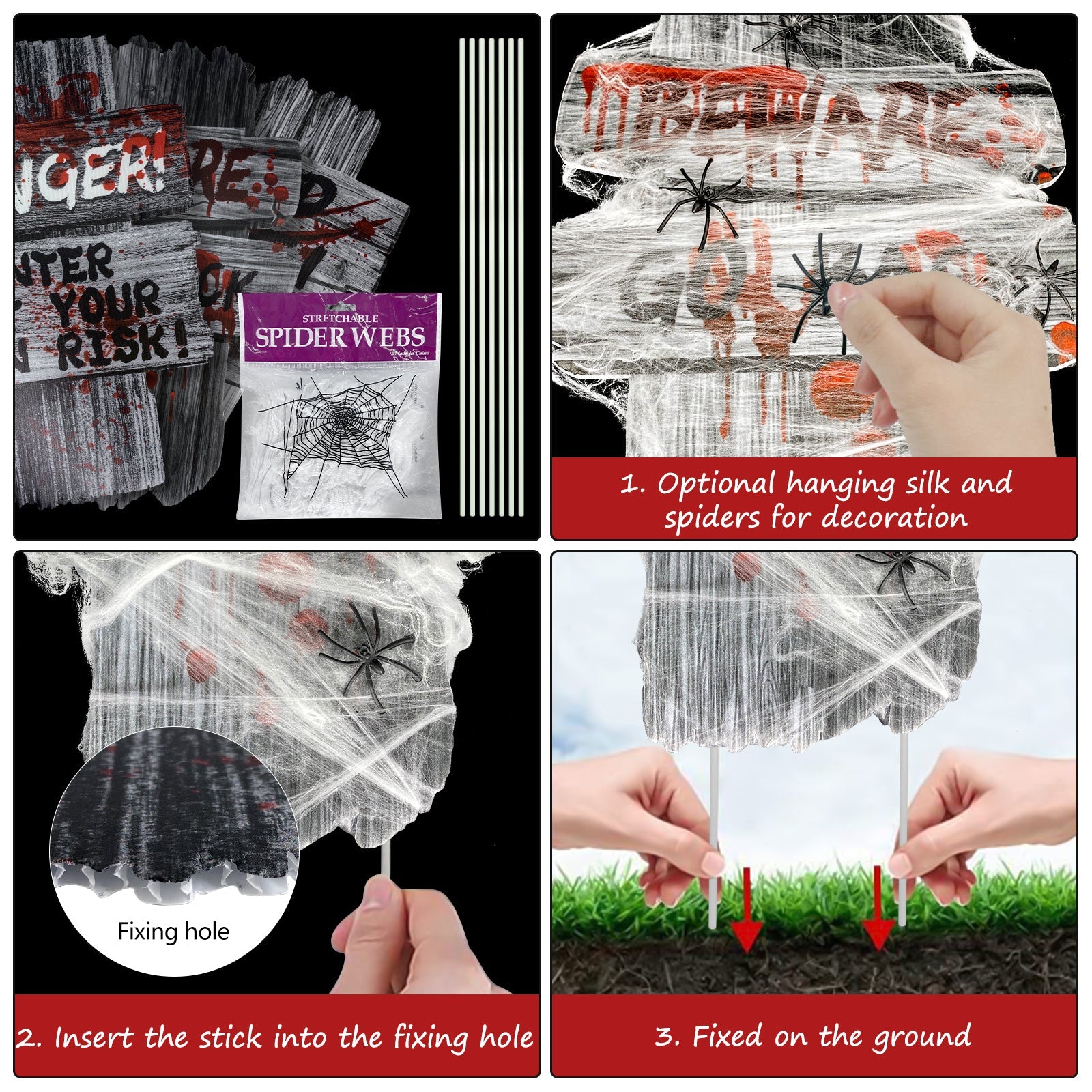 Halloween Outdoor Yard Signs Stakes w/ 20g Cobwebs & 18 Pcs Small Spider