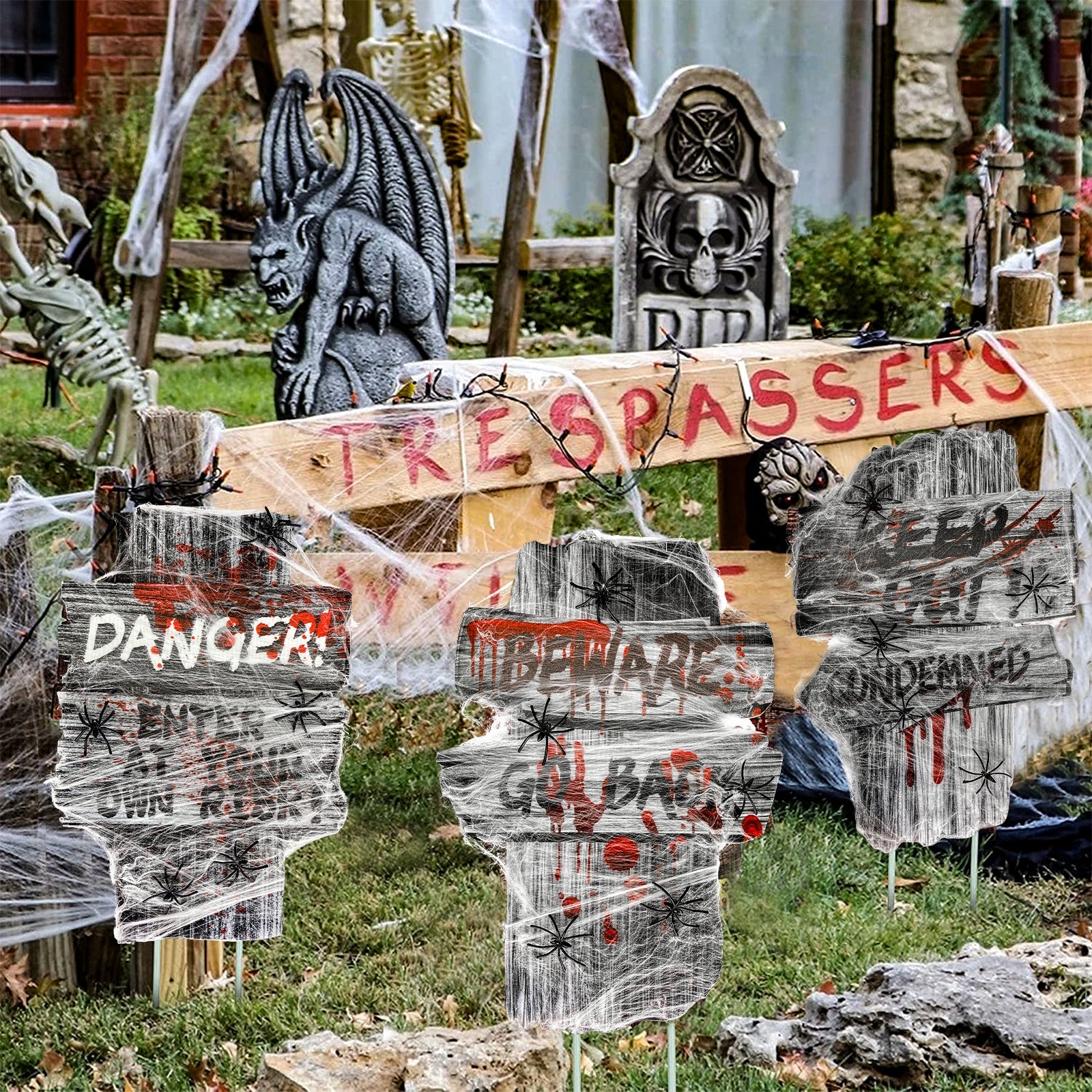 Halloween yard signs with stakes, you can decor your lawn,garden,backyard DIY the back with words, Halloween Decor yard signs, Halloween lawn decorations, Halloween yard decorations, garden ornaments, door welcome signs, party background decor, Halloween party supplies, Halloween hunt game, selfie props etc. Large Yard Stakes Halloween sign contain 3 warning signs, “DANGER ENTER AT YOUR OWN RISK”, “KEEP OUT CONDEMNED” , “BEWARE GO BACK” makes this yard decor package will easily boost the Halloween Scary feel in your garden. *- Halloween Decorations Outdoor Yard Signs: Large Yard Stakes Halloween sign contain 3 warning signs, “DANGER ENTER AT YOUR OWN RISK”, “KEEP OUT CONDEMNED” , “BEWARE GO BACK” makes this yard decor package will easily boost the Halloween Scary feel in your garden. Size 15’’ x 12’’, Bigger and more attractive than similar products. *- Halloween Decorations Clearance: each package comes with 3 pcs Halloween Yard Signs Stakes and 20 g cobwebs 18 pcs small fake spiders;will brings great Halloween Vibe to your home, suitable for Halloween front yard, outdoor decorating for Scary Halloween themed parties, lawn decorating, which can strengthen the atmosphere of Halloween. *- Halloween Yard Decorations Yard Sign: Halloween decorations are made of durable corrugated plastic, weatherproof and corrosion resistant reusable, the Halloween yard sign decorations can withstand waterproof and rainy or windy weather resistant. Reusable and lasts for next year use apply for any outdoor Indoor display. *- Halloween Yard Signs with Stakes: easy to install, Halloween decorations for outdoor indoor use contains fiber posts,each sign has two plastic posts. You only need to insert the plastic pile into the hole of the sign and then into the ground of the lawn. DIY decor the yard signs with cobwebs and fake spiders create a horrible feeling in your yard. *- Multi-Use Halloween Decor Party Supplies: Halloween yard signs with stakes, you can decor your lawn,garden,backyard DIY the back with words, Halloween Decor yard signs, Halloween lawn decorations, Halloween yard decorations, garden ornaments, door welcome signs, party background decor, Halloween party supplies, Halloween hunt game, selfie props etc.
