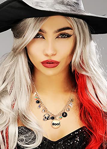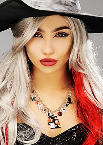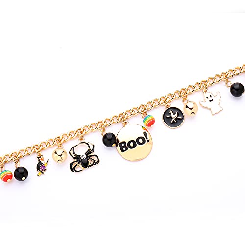 - ★ This Halloween necklace is embellished with delicate charms: white ghost, black switch, black spider, black cat, black beads, orange beads